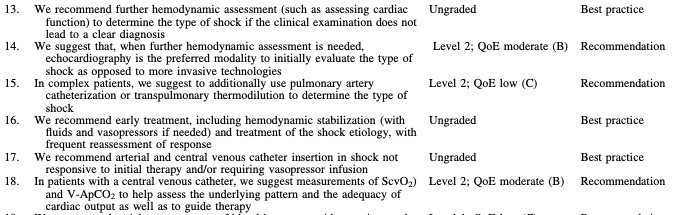 The ESICM consensus on circulatory shock and hemodynamic monitoring makes the following recommendations which are useful in this setting:
